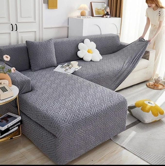 - التغطية: غطاء كنبة واسع على شكل L يمتد حتى طول 6 متر، مثالي للكنب ذو الزوايا الكبيرة والأقسام.