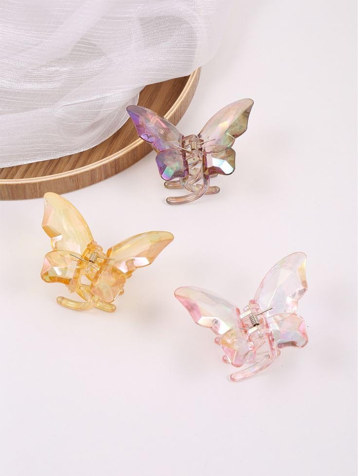 Generic - مشبك شعر كبير على شكل فراشة كريستالية 3 قطع بألوان مختلفة