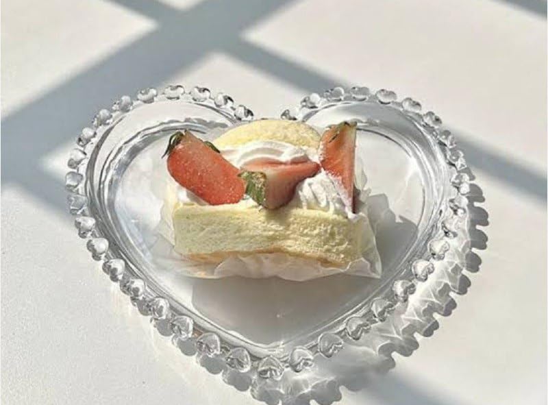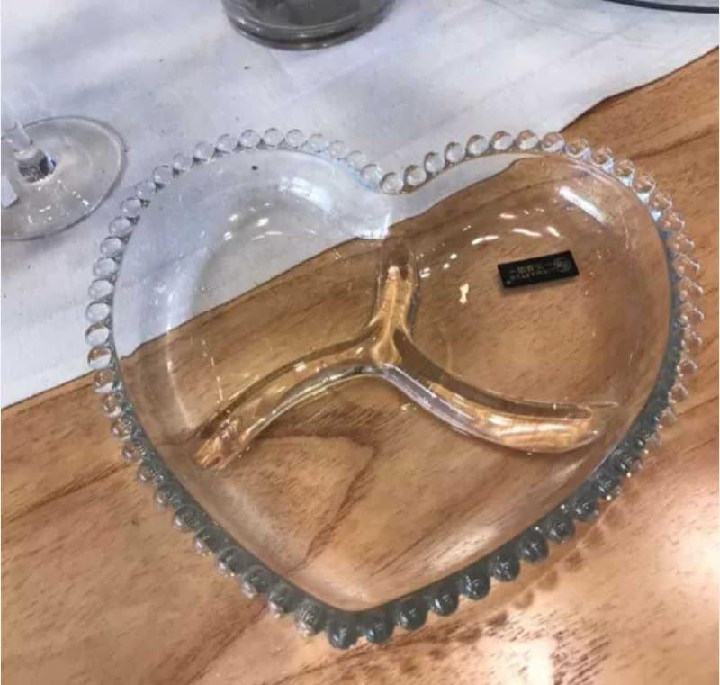 - تصميم أنيق على شكل قلب: طبق زجاجي جميل على شكل قلب مع حواف مطرزة مزخرفة يضيف لمسة ساحرة إلى إعداد طاولتك وتقديم الطعام