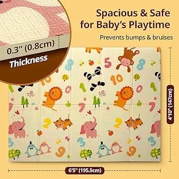 Generic - جيني سجادة لعب كبيرة - سجادة اطفال قابلة للطي - فوم سميك ناعم مزدوج الجوانب - مقاس 180 × 150 سم - متعددة الالوان
