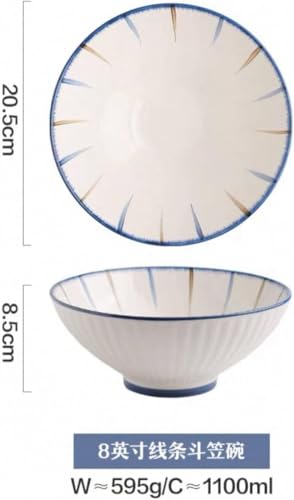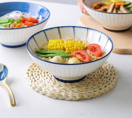Generic - جيني وعاء تقديم كبير بحواف زرقاء، وعاء نودلز وشوربة سيراميك ابيض، قطر 20.5 سم، ارتفاع 8.5 سم، سعة 1100 مل