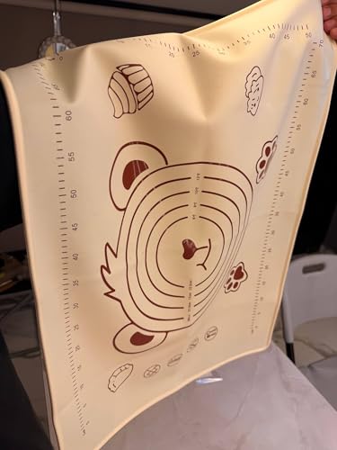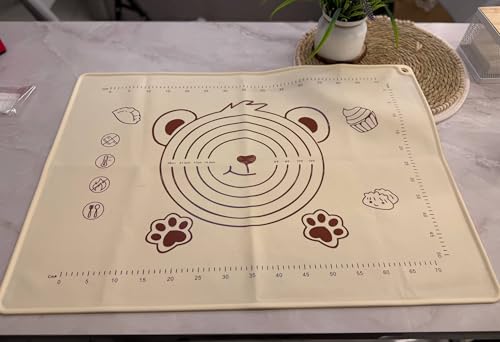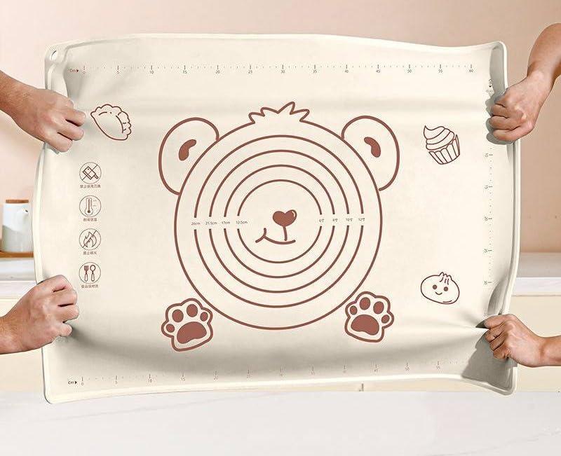 - سيليكون فاخر: بساط خبز كبير مصنوع من مادة السيليكون عالية الجودة والآمنة غذائيًا مع تصميم دب رائع وعلامات قياس