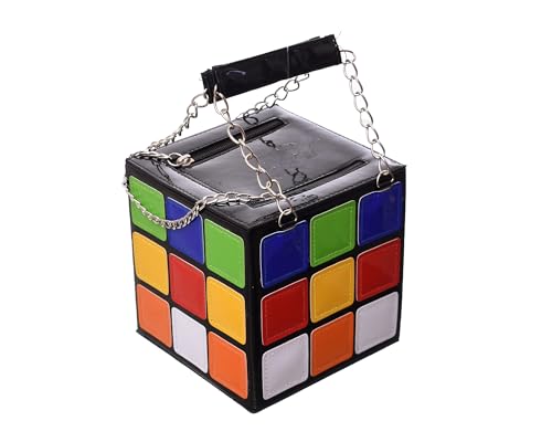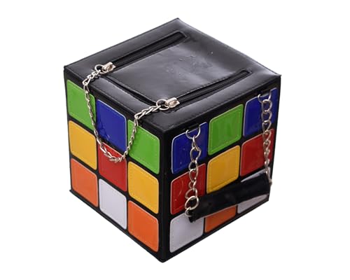 Generic - شنطة جلد على شكل مكعب روبيك بتصميم رائع وحامل معدني يضيف المزيد من المرح للأطفال - متعددة الألوان