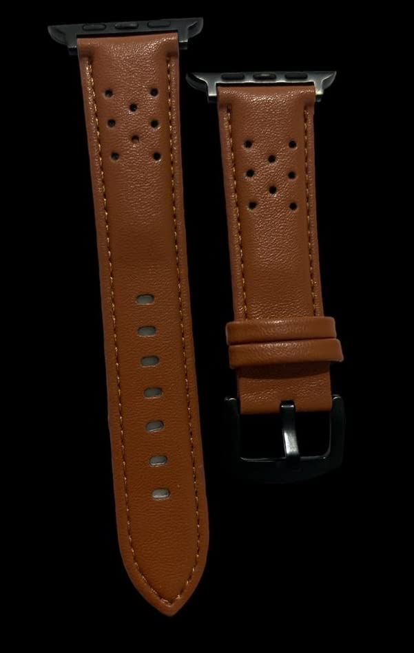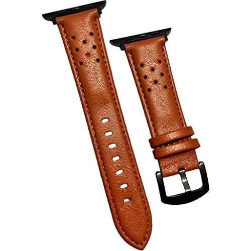 MHM - سوار رياضي مصنوع من الجلد ومناسب لساعة ابل مقاس 42/44/45 ملم سلسلة 6/7/8، بني