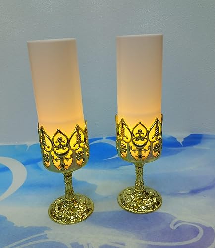 Generic - طقم 2 شمعه الكتروني ليد بالبطارية حجم كبير 20 سم، متعدد الألوان
