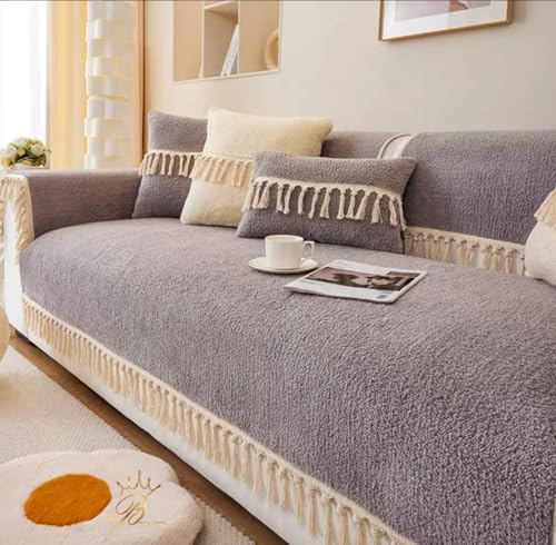 Generic - طقم غطاء كنبة زاوية من الكتان مع شراشيب مقاس 2 م × 95 سم، يتضمن 3 أكياس مخدات لمسند الظهر مقاس 45 × 45 سم، طقم من 4 قطع (كافيه)