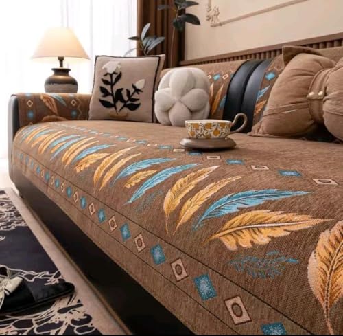 Generic - طقم أغطية كنبة لغرفة المعيشة من 10 قطع بلون بني ونقوش فيروزية، لكنبة مقاس 1.95 م و1.45 م من فلو (لون كافيه)