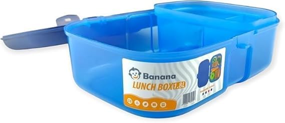 Generic - جيني لانش بوكس 1.8 لتر | صندوق غداء مقسم مرن مع مجموعة ادوات مائدة | ازرق