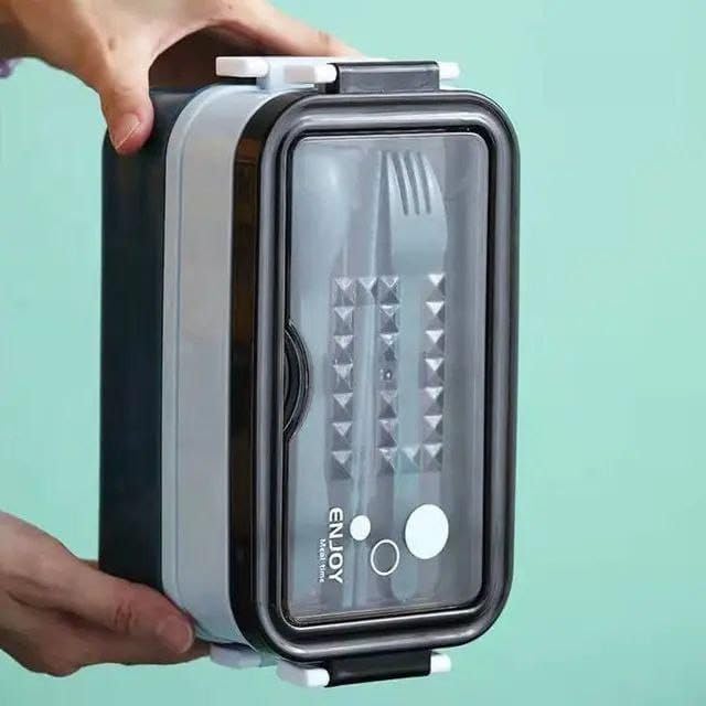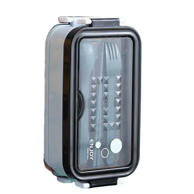 Generic - لانش بوكس بغطاء آمن من مادة البولي بروبلين، 21 × 11 × 6 سم، رمادي وأسود
