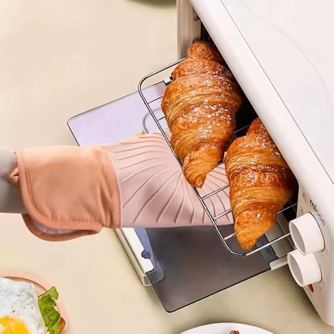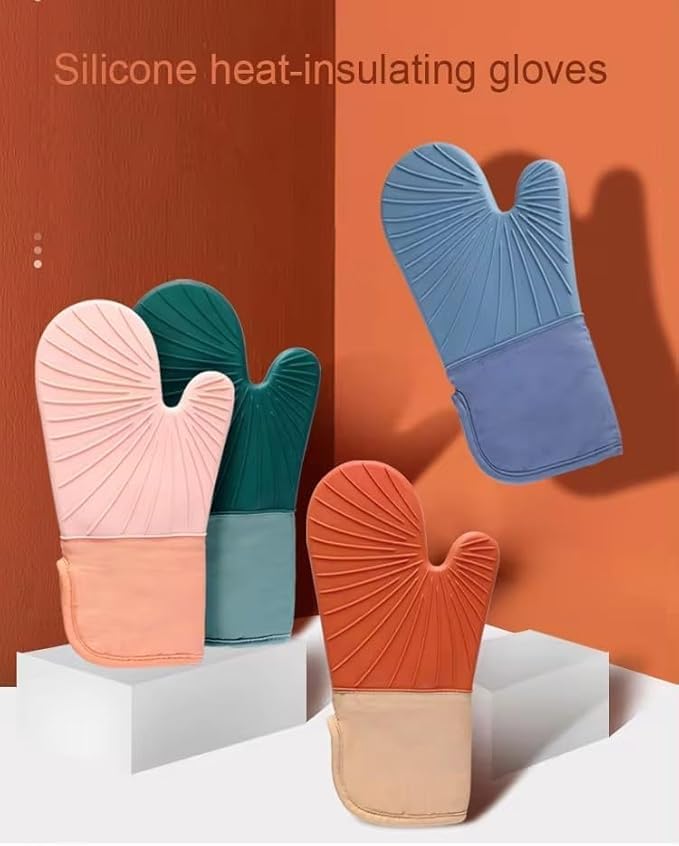 Generic - قفازات مطبخ سميكة من لوكس مبطنة بالسيليكون من الداخل ومقاومة للحرارة وغير قابلة للانزلاق (لون أخضر)