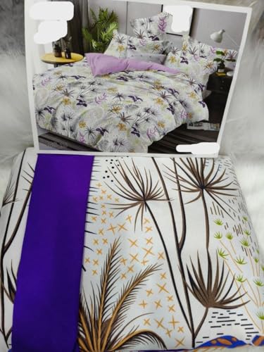 Generic - طقم غطاء لحاف قطني بنقشة زهور تصميم بوجهين مع جانب خلفي سادة مصنوع من مادة ممتازة، مقاس 2.2×2.4 م