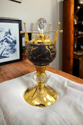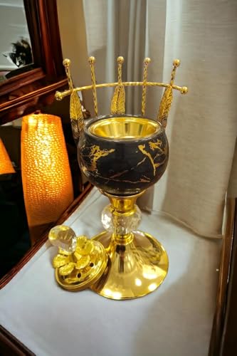 Generic - حامل بخور بورسلين فاخر بنمط رخامي، مبخرة مزخرفة بالكريستال الذهبي مع حامل، ديكور للمنزل والمكتب (لون أسود)