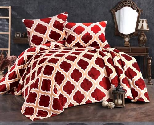 Generic - بطانية فاخرة بنمط مغربي، تصميم رباعي الفصوص باللونين الأحمر والأبيض، خامة قطيفة، 2.10 × 2 م، شراشف شتوية