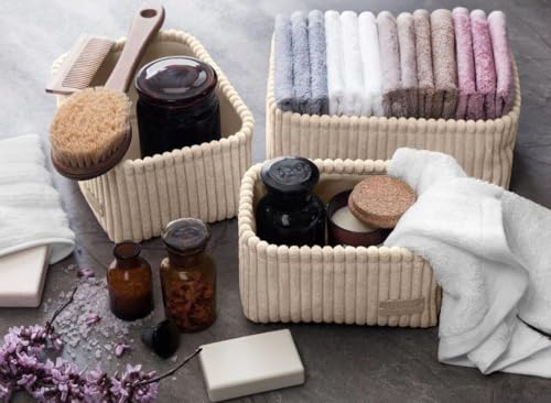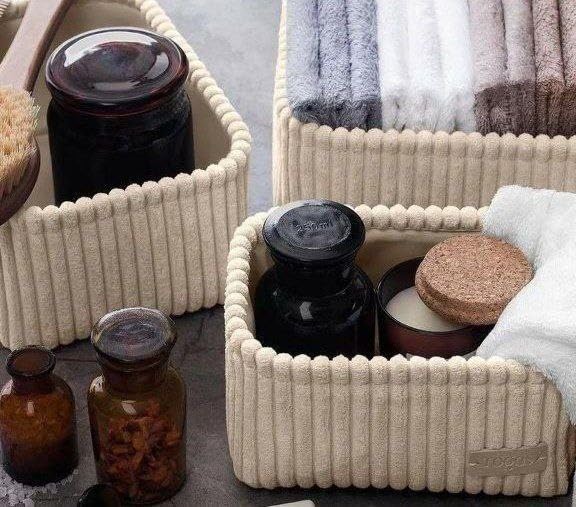 - خامة ممتازة: مصنوعة من قماش قطيفة مضلع فاخر، تجمع سلال التخزين هذه بين الأناقة والمتانة لتلبية احتياجات تنظيم دولاب ملابسك.