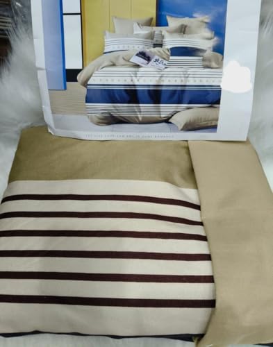Generic - طقم غطاء لحاف قطني، مخطط بتصميم مزدوج الوجه ووجه خلفي سادة، من جينيريك، مقاس 220 × 24 سم، لون بيج (Beige) وبني (Brown)