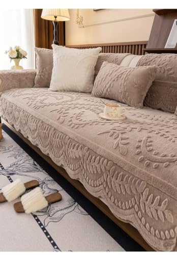 Generic - غطاء كنبة مزخرف، طقم واقي كنبة مع مسند ظهر، رمادي وأبيض، مقاس 2.1 × 3 م، بني (cafe)، عبوة من قطعتين