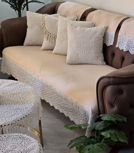- ديكور منزلي متناسق: تخلق المجموعة المتطابقة مظهرًا متماسكًا في جميع أنحاء مساحة المعيشة الخاصة بك مع درجات اللون البيج المتسقة وتصميم حواف المكرمية عبر جميع أغطية الأريكة والمفارش