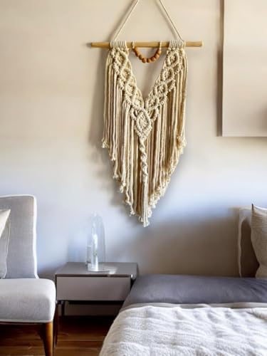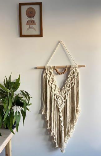 Generic - لوحة جدارية من جينيريك، مكرمية معلقة للحائط من القطن الطبيعي لغرف المعيشة والنوم، لون بيج طبيعي، مقاس 50 × 70 سم، قطعة واحدة