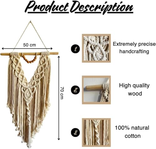 - الأبعاد: مكرمية كبيرة للتعليق على الحائط بعرض 50 سم وارتفاع 70 سم، تلفت النظربصورة مذهلة في أي غرفة.