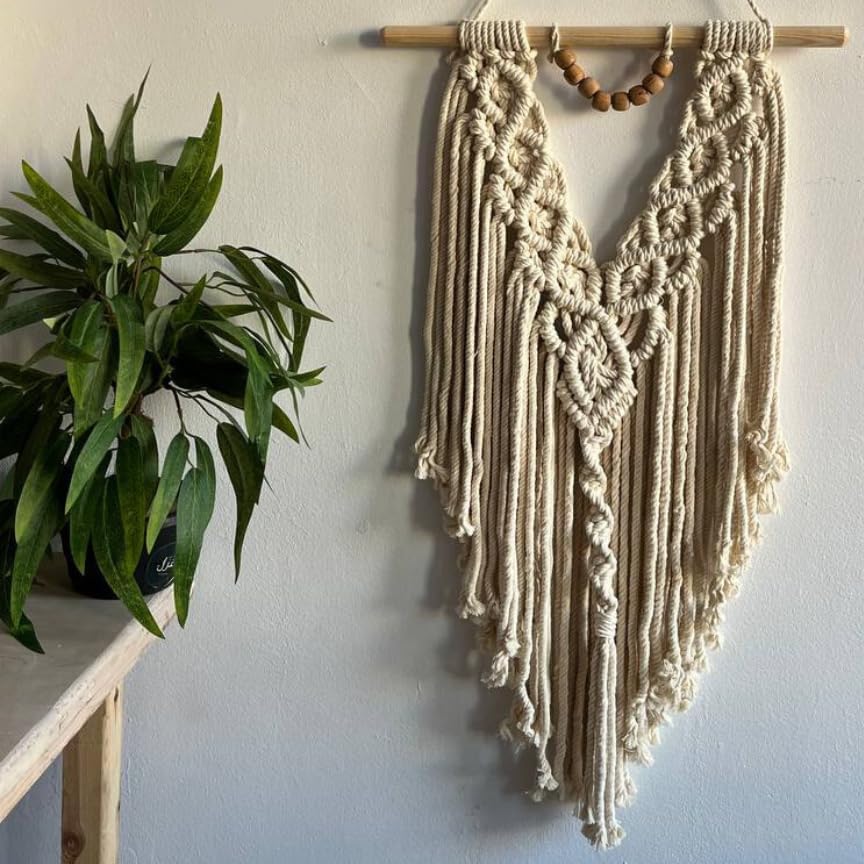 - تصميم مصنوع يدويًا. مكرمية مصممة بدقة متناهية، تتميز بأنماط حياكة معقدة وشراشيب منسدلة، لمظهر بوهيمي جذاب.