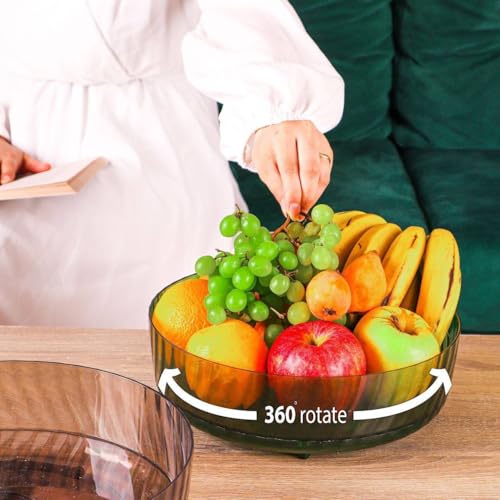 - تصميم متعدد الاستخدامات: بولة فاكهة اكريليك دوارة شفافة مثالية لعرض وتنظيم الفاكهة والوجبات الخفيفة وأغراض المطبخ، مزودة بقاعدة دوارة تتيح سهولة الوصول.