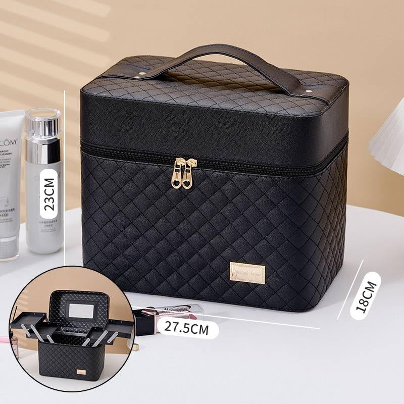 - صندوق مكياج أنيق مصنوع من الجلد الصناعي مما يمنحه مظهرًا فاخرًا.