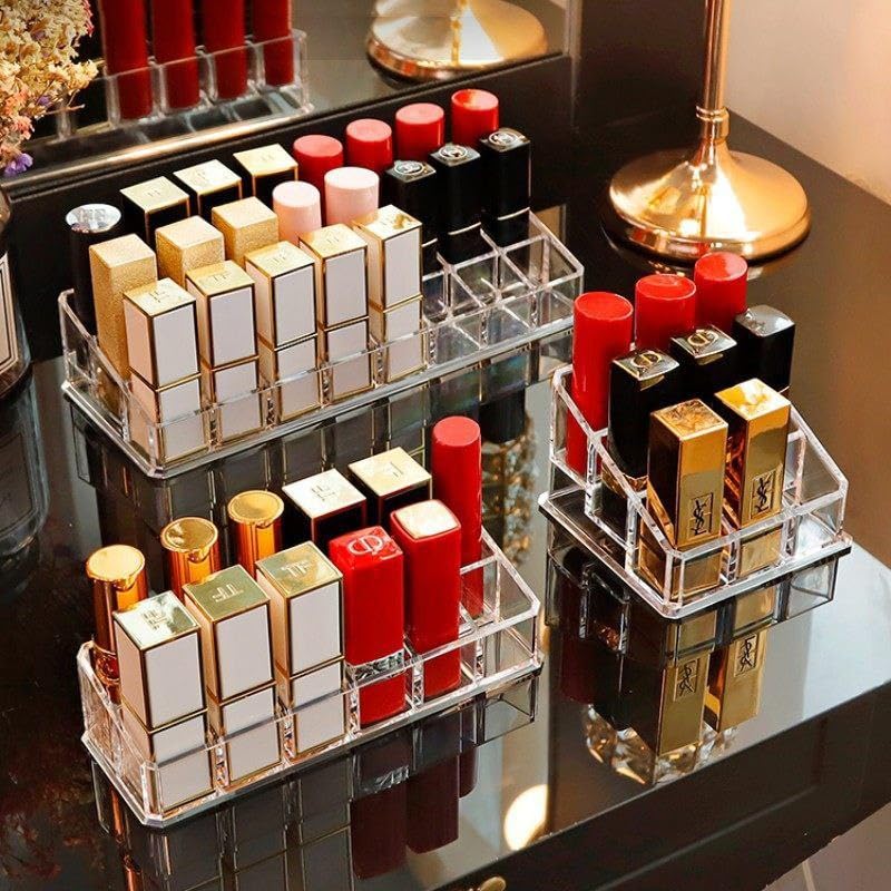- يتمتع المنظم بـ36 خانة تتيح تنظيم مجموعة واسعة من أقلام الروج وفرش المكياج.