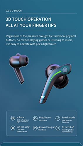 Generic - سماعات أذن للألعاب MD168 عالية الجودة بخاصية التحكم باللمس بتقنية تي دبليو اس بوقت استجابة منخفض، لاسلكي، داخل الأذن، اسود
