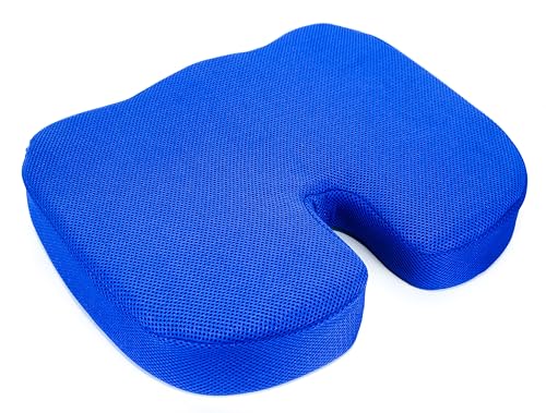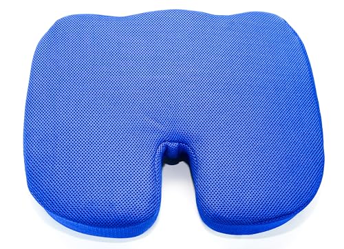 Generic - وسادة مقعد من فوم ميموري، مع جل مدمج وغطاء ناعم من قماش الفيلور غير قابل للانزلاق، لدعم العظام وتخفف آلام العصعص والعمود الفقري وعرق النسا وآلام الظهر، لكرسي المكتب ومقعد السيارة والطائرة، لون أزرق