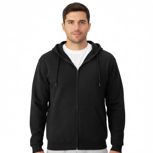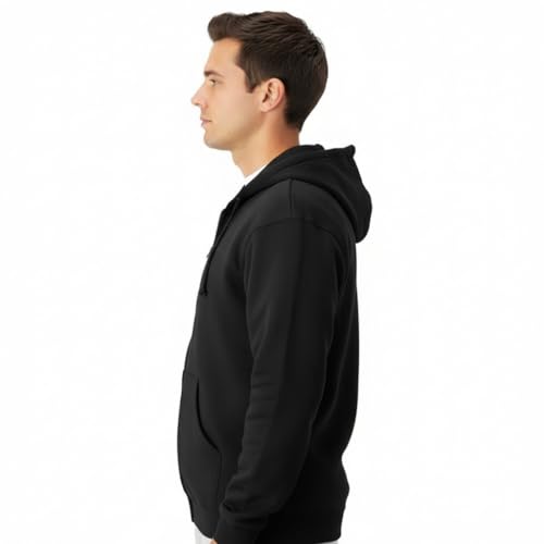 Generic - سويت شيرت بغطاء للرأس وسوستة للرجال، لون اسود.