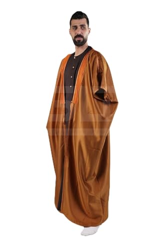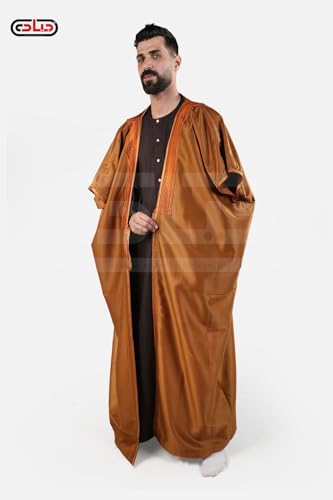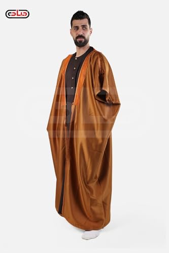 Generic - عام عباية رجالية تقليدية، أسود وبني ذهبي، تصميم أمبريال سعودي بقيطان عريض، كم ثلاثة أرباع، عباءة فاخرة للمناسبات الرسمية