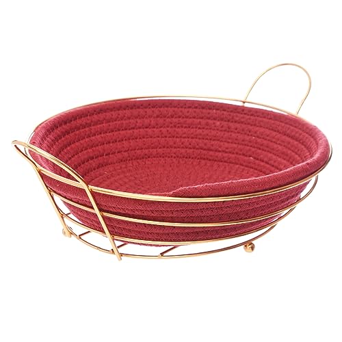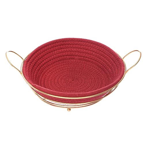 Generic - سلة خبز دائرية معدنية مع وعاء من الصوف لتقديم الخبز والفواكه للمنزل مجموعة قطعتين - لون نبيذي ذهبي