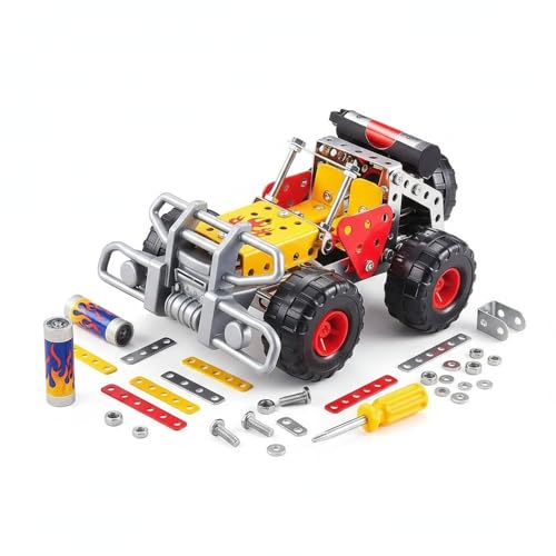 - مجموعة البناء: مجموعة بناء معدنية ديناميكية تحتوي على 125 قطعة متينة لبناء سيارة كهربائية للطرق الوعرة، مثالية للبنائين الصغار وعشاق الهندسة.