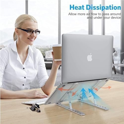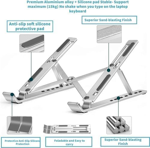 Generic - حامل معدني لللابتوب والتابلت قابل للطي بارتفاع 15 سم - فضي، لحاسوب محمول
