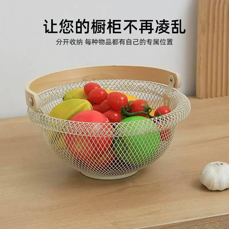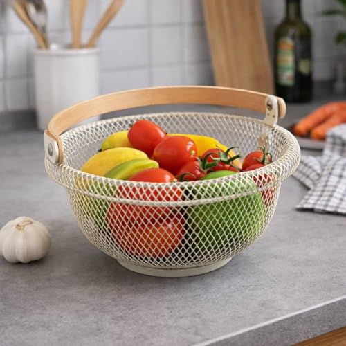 - حل تخزين متعدد الاستخدامات: سلة سلكية معدنية بمقبض خشبي مثالية لتخزين وعرض الفواكه والخضروات والخبز أو غيرها من أساسيات المطبخ على أسطح الطاولات