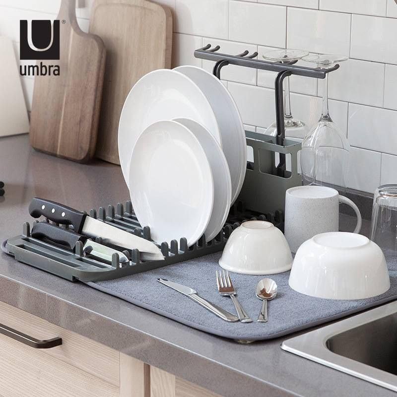 - الميزات العملية: حصيرة رمادية اللون مع منظم أطباق قابل للإزالة يوفر خيارات ترتيب مرنة لمختلف عناصر المطبخ