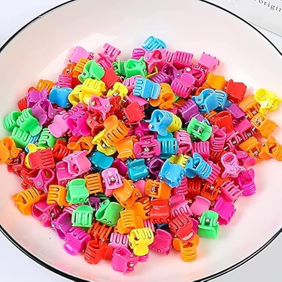 Generic - مشابك شعر صغيرة بالوان مشابك شعر صغيرة من القفاش الملون مشابك شعر بلاستيكية صغيرة للبنات والاطفال لعمل الخصل الشعر فى برطمان، متعدد الألوان