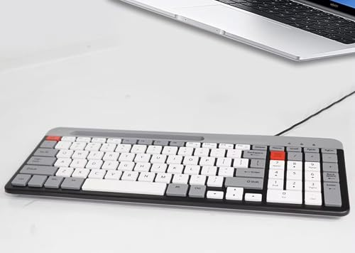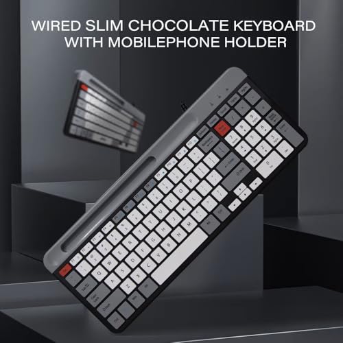 Generic - كيبورد ألعاب بسلك K2 بمنفذ USB مع 101 مفتاح بإضاءة ملونة مع حامل موبايل، لوحة مفاتيح بحروف عربية وإنجليزية تدعم ويندوز 7 و8 و10 و11 من ام جيه كيه - رمادي
