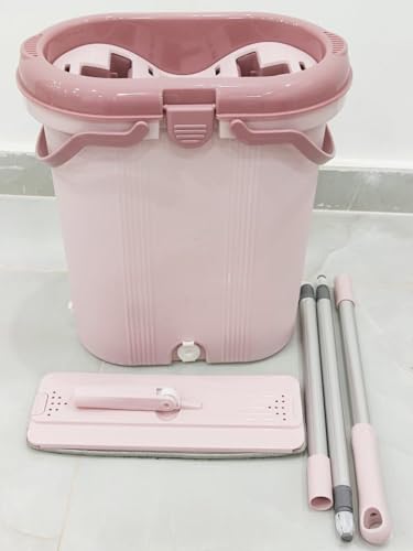 Generic - مجموعة ممسحة مسطحة مع دلو من 3 قطع، مع 2 ممسحة مايكروفايبر بديلة (14 لتر)