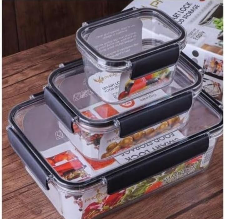 Generic - مجموعة علب ثلاجة للخضروات والفواكه الطازجة باحجام مختلفة طعام للنزهات الخارجية والمدرسة للطلاب مقاومة للحشرات والرطوبة شفافة بلون الاسود اكريليك