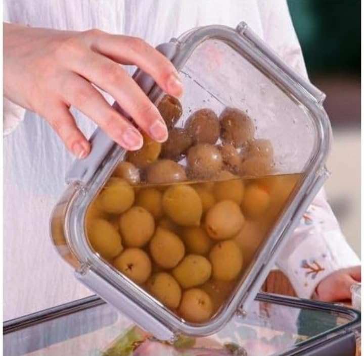 - حلقة إغلاق مطاطية مقاومة للرطوبة والحشرات حفظ الطعام بعناية والحفاظ على حالته الطازجة. مصنوعة من مادة البولي ايثيلين تيرفثالات الشفافة لرؤية محتوى العلبة تتميز صواني تخزين الطعام القابلة للقفل بأقفال مميزة سهلة الإغلاق، مع إغلاق داخلي مرن يساعد على بقاء طعامك طازجًا. زجاجات متعددة الاستخدامات مع أغطية مثالية لتخزين الطعام (مثل المكرونة)، أو حمل الغداء إلى العمل علب تخزين مريحة واسعة لحفظ جميع أنواع الطعام والوجبات. سعة صغيرة 400 متر سعة متوسطة 1000 مل سعة كبيرة 2800 مل