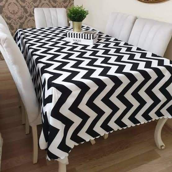 Generic - مفرش طاولة مودرن بطراز شيفرون كلاسيكي – باللونين الأبيض والأسود، مقاس 1.40 × 2.20 م، مصنوع من خامة هامر المتينة.