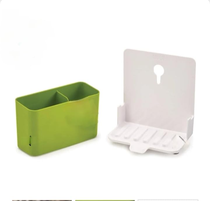 Generic - منظم حوض بتصميم عصري أنيق، باللونين الأخضر والأبيض، مصنوع من البلاستيك، مع حجرات متعددة سهلة التنظيف وقابلة للتعديل، لحمل الصابون والليفة