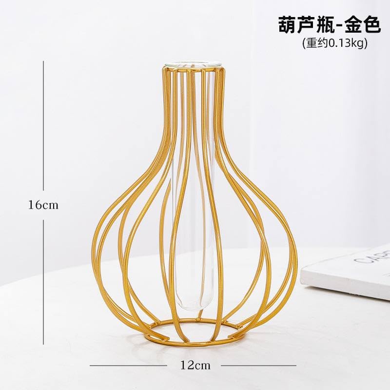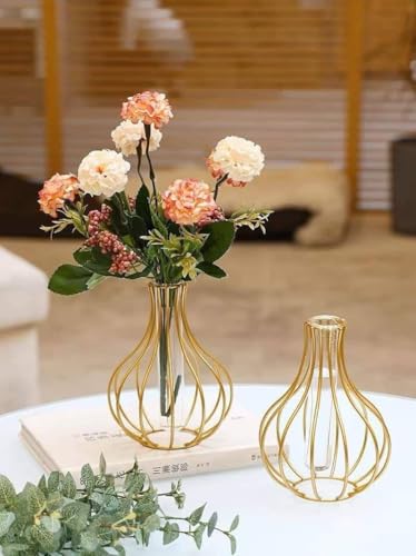Generic - فازة زهور زجاج حديثة بإطار معدن ذهبي بحشوة أنبوب اختبار، فازة لبراعم الزهور من منتجات الديكور لديكور المنزل من جينيريك