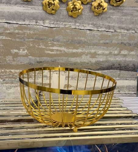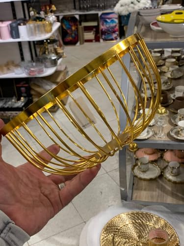 Generic - سلة فاكهة سلكية بلون ذهبي وتصميم عصري، عبوة تخزين معدنية دائرية، 25×13 سم