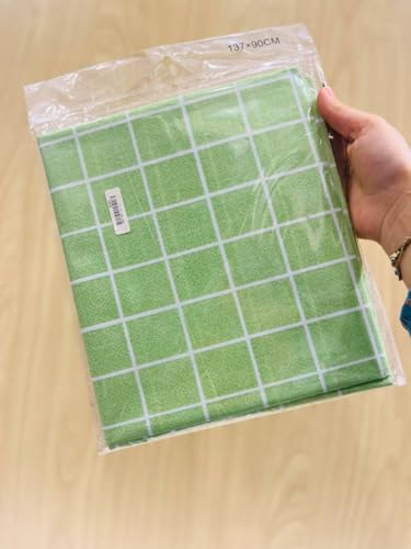Generic - مفرش طاولة عصري بنقشة مربعات بلون أخضر، مفرش ترابيزات تناول طعام من القماش الناعم، سهل التنظيف، مقاس 1.37 متر × 90 سم
