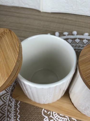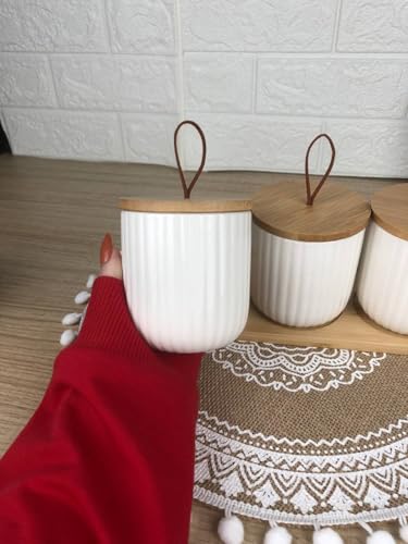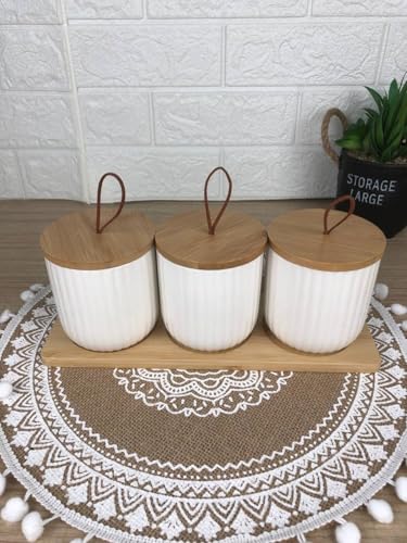 Generic - مجموعة علب مطبخ عصرية، برطمانات بيضاء مزودة بأغطية من خشب البامبو ومرفقة بحامل، علب تخزين تزيينية، مجموعة من 3 قطع