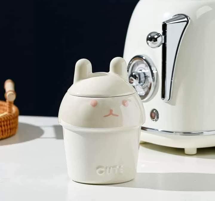 - تصميم أرنب رائع: يتميز بشخصية أرنب ساحرة مع آذان لطيفة على الغطاء، مما يجعله إضافة مبهجة لمطبخك أو مكتبك