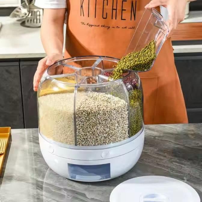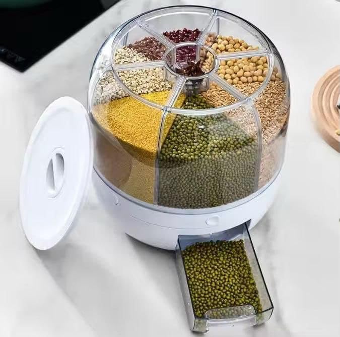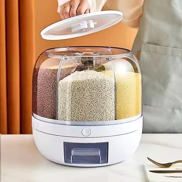 - السعة: يتميز بـ 6 مساحات تخزين منفصلة للتخزين المنظم للحبوب والبقوليات والأطعمة الجافة المختلفة، مما يجعل إعداد الوجبات أكثر كفاءة وسهولة.