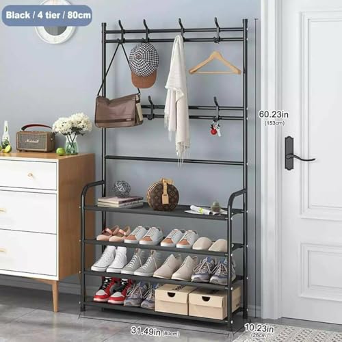 Generic - حامل منظم ملابس معدني متعدد الاستخدامات، 5 أرفف، عرض 80 سم، أبيض/أسود (ابو كيه اتش)